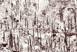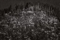In this obscure and natural noise, primeval sensations of the human being, maternal caves and mystical creatures echo all around. With the confrontation of those symbolic images, a backcountry of the mind is created, leaving us to roam a mental realm dominated by Nature.